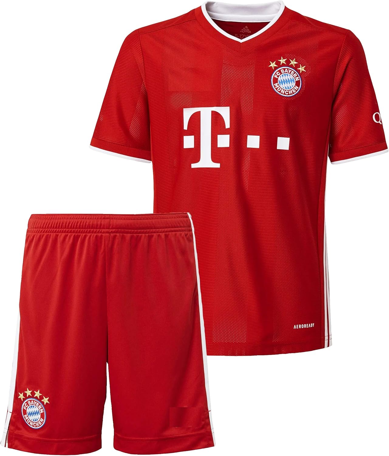 The bayern münchen 2020/21 jersey is designed in classic club colors of 'fc bayern true red' and white.